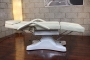 Ultra plush hydraulic aesthetician bed with hydraulic pump for effortless lifting and lowering action, fiberglass base, face hole, this unique design allows you to turn the bed around completely 360' so you can have the most flexibility and freedom of movement while working on clients.