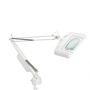 UL listed 3 - diopter magnifying lamp with rectangular distortion free lens and dual lamps. Rectangular lens allow for a wider field of vision. C-clamp table vise included. Optional metal roller base model no. 53.