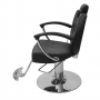 The Woodrow All Purpose Chair is a sleek contemporary designed chair. It features an adjustable removable headrest for stylist ease and is great for styling purposes. Its reclining back adds another element of functionality and will work great in any salon décor. Features include polished chrome hydraulic base, chrome footrest, chrome cushioned arms, and rich black vinyl leather upholstery.